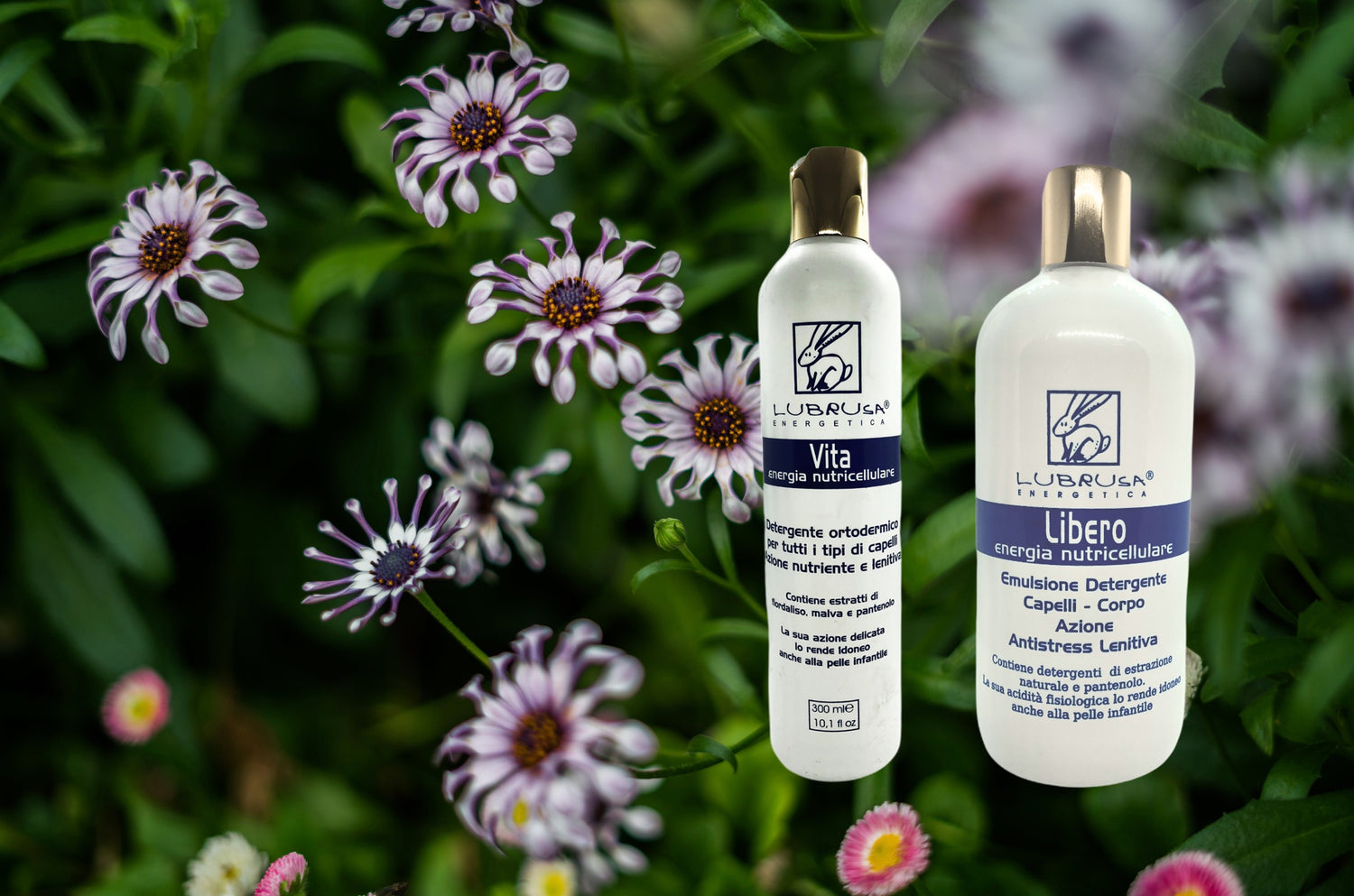 Emulsioni capelli corpo Lubrusa. Lo shampo per capelli delicati, Vita e il detergente per il corpo, Libero. Nutrienti e lenitivi, con la loro azione sono idonei anche per pelli sensibli e infantili.